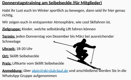 Die Anmeldung für beide Kurse ist am 23. November 2025 um 19:30 Uhr nur Online auf unserer Homepage www.ski-club-lauf.de möglich.
